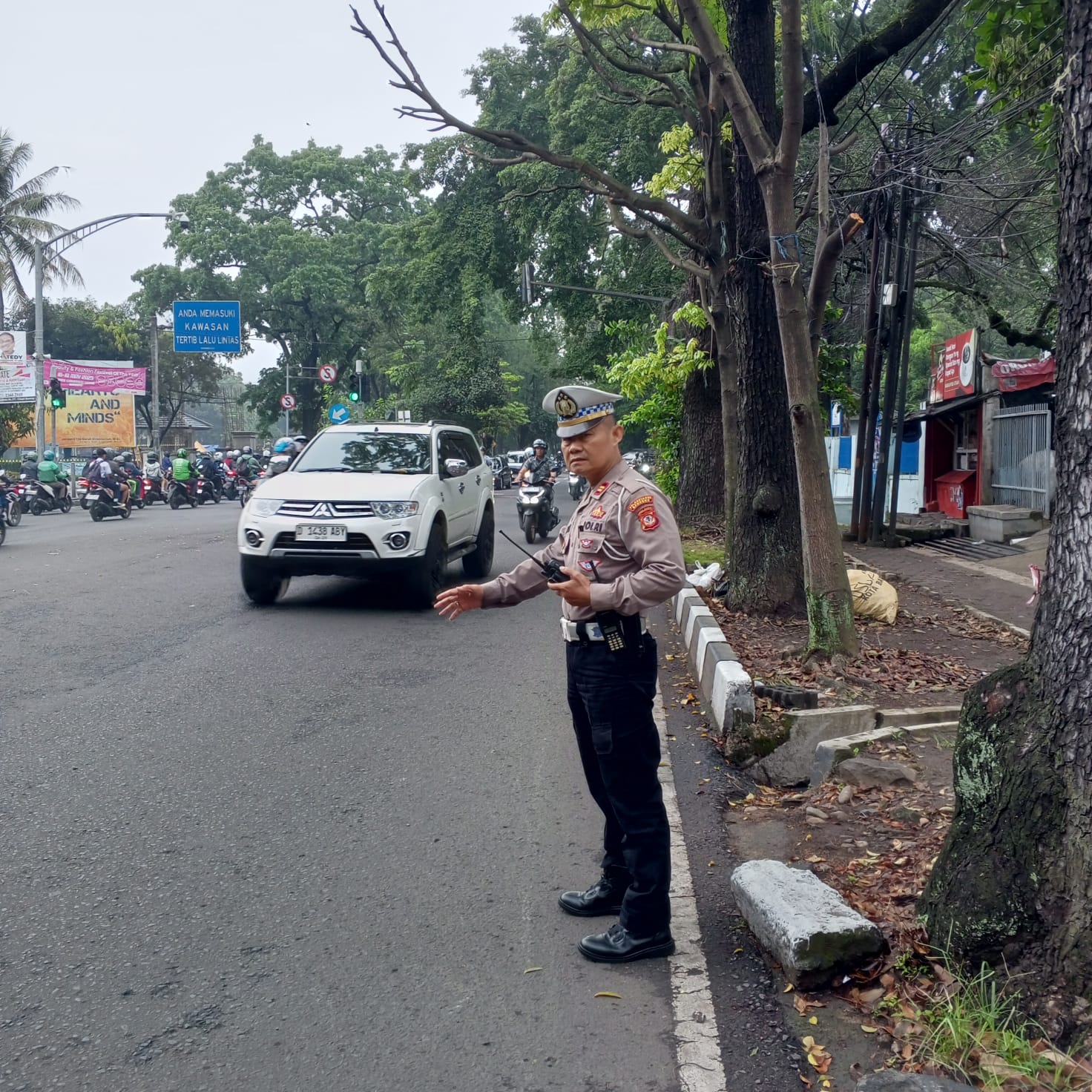 Antisipasi Kemacetan di siang hari personil Unit Lalulintas Polsek Bandung Wetan Melaksanakan Pengamanan Jalur di Jl.Dipenogoro kota Bandung antisipasi yanmas siang hari pada Tanggal 03 Oktober 2025