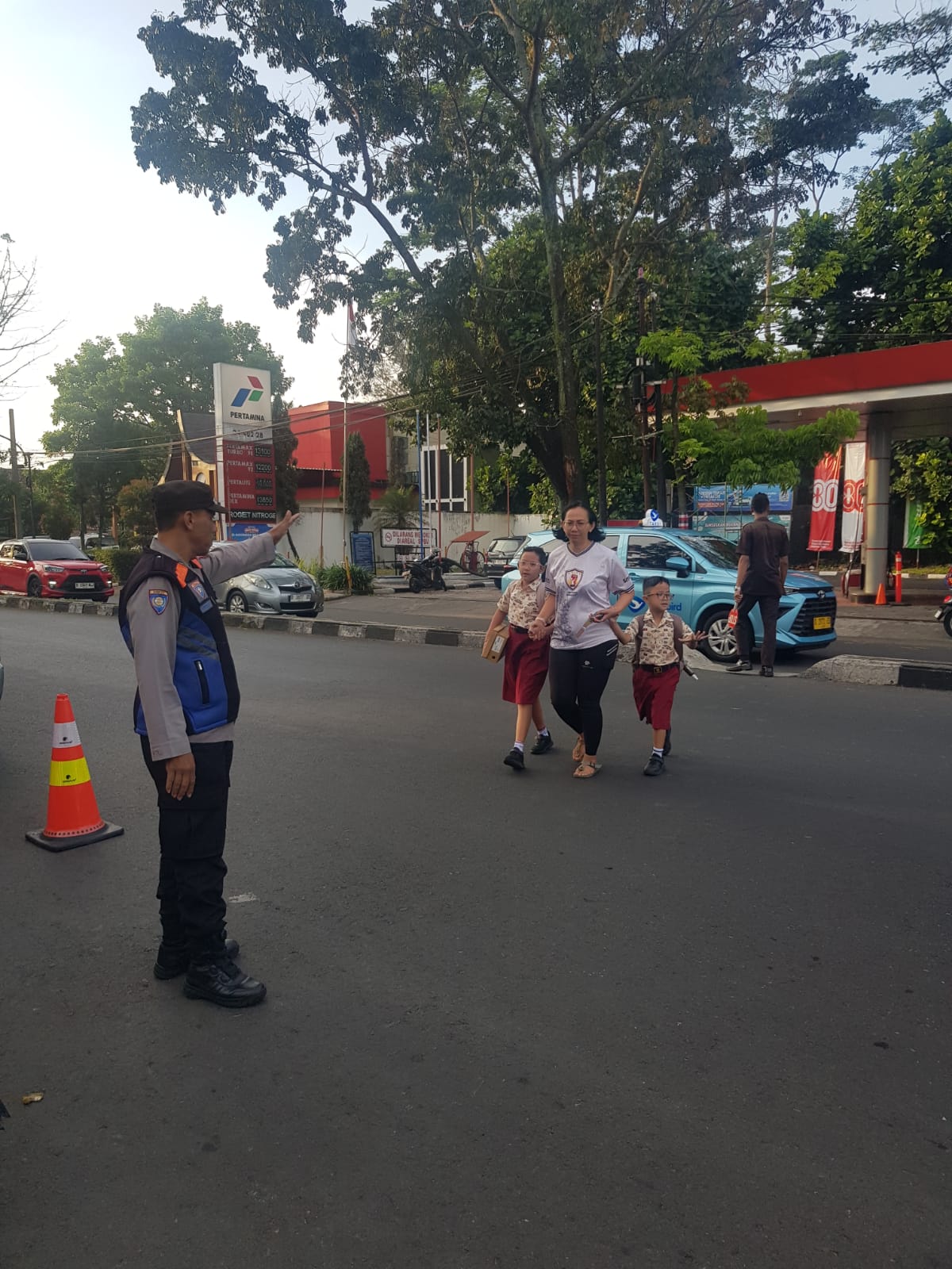 Antisipasi kemacetan pagi hari, personil Polsek Batununggal melaksanakan pengamanan jalur di titik rawan kemacetan Wilayah Hukum Polsek Batununggal Polrestabes Bandung.(17/9/2025)