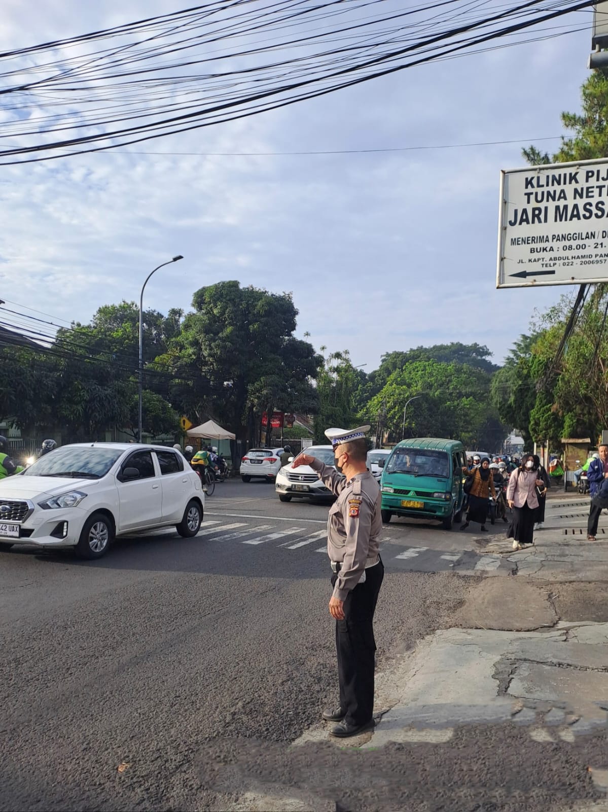 Polrestabes Bandung, Polda Jabar Polsek Sukasari – Antisipasi kemacetan pagi hari, personil lalulintas Polsek Sukasari melaksanakan pengamanan jalur di titik rawan kemacetan Wilayah Hukum Polsek Sukasari Polrestabes Bandung.(18/9/2025)