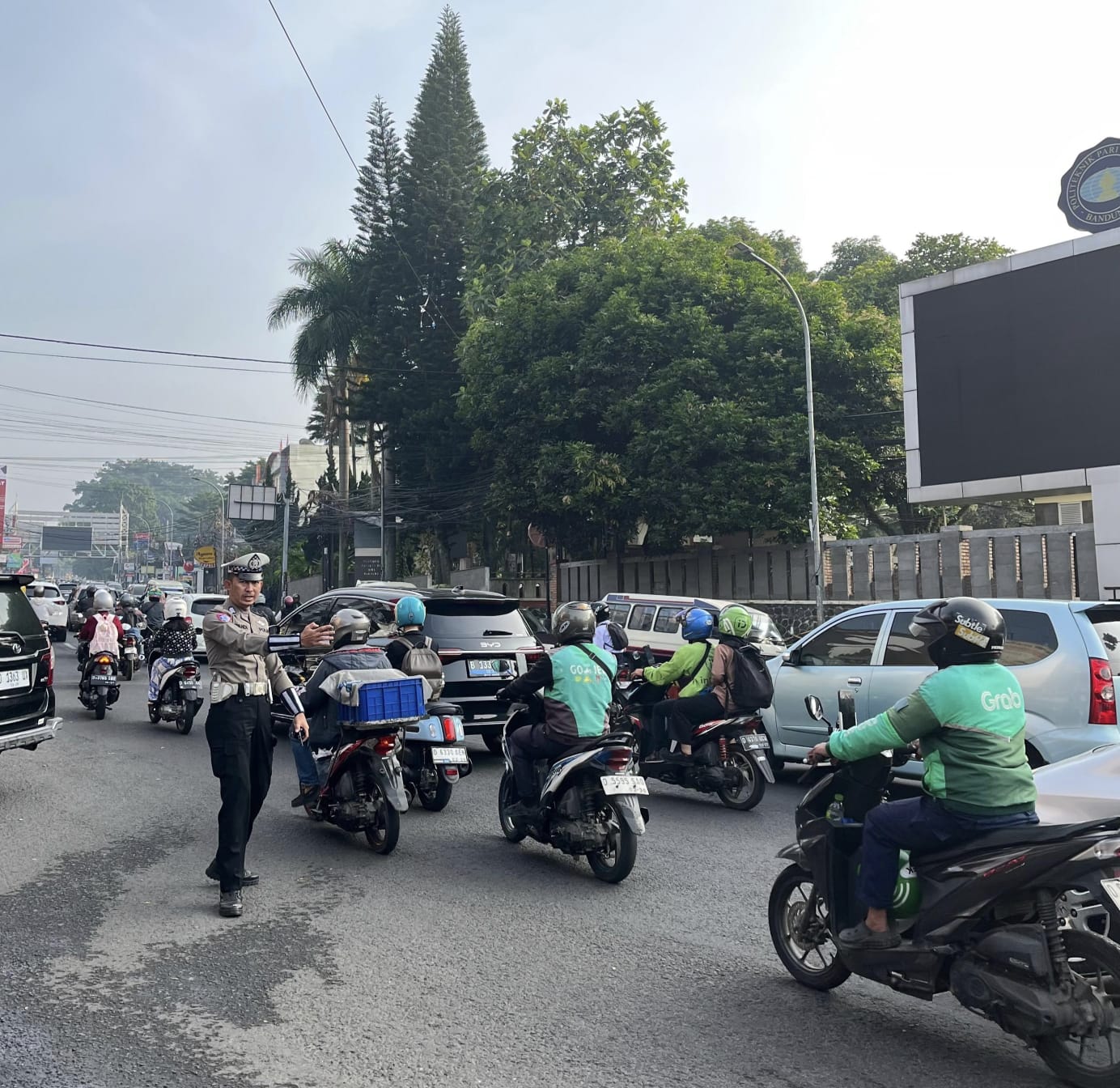 Polrestabes Bandung, Polda Jabar – Polsek Sukasari – Antisipasi kemacetan pagi hari personil lalulintas Polsek Sukasari lakukan giat pengamanan jalur di titik rawan kemacetan Wilayah Hukum Polsek Sukasari Polrestabes Bandung. (27/10/2025)