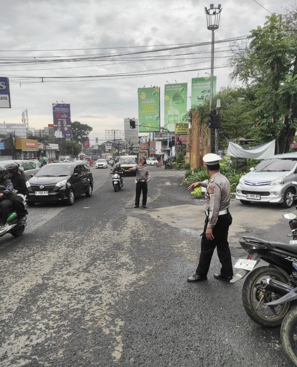 Antisipasi Kemacetan Pagi Hari Unit Lalulintas Polsek Sukasari Lakukan Giat Pengamanan Jalur.