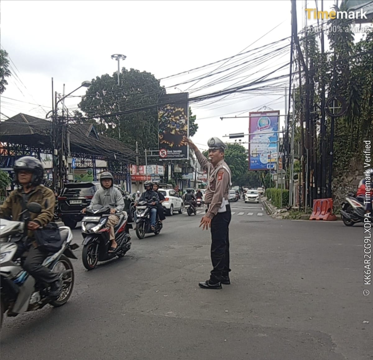 Antisipasi Kemacetan Pagi Hari Unit Lalulintas Polsek Sukasari Lakukan Giat Pengamanan Jalur.