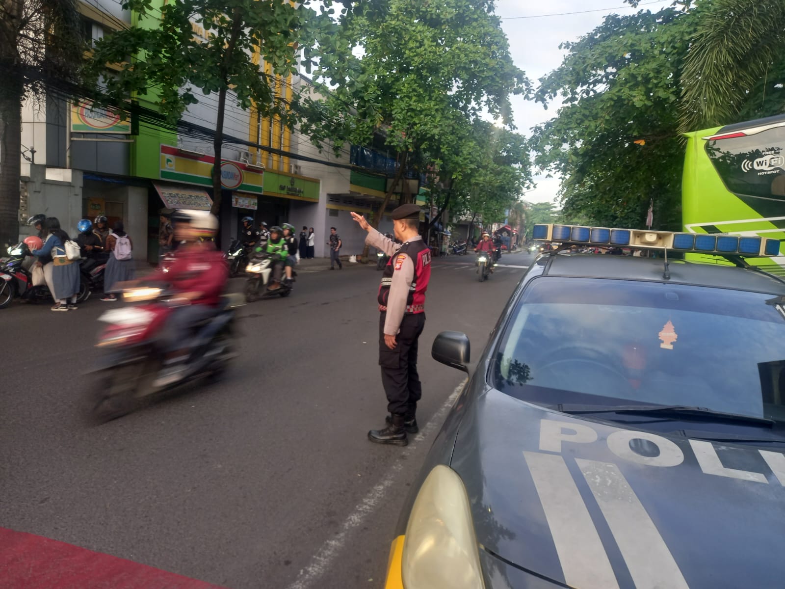 Bantu Masyarakat Pengguna Jalan Jajaran QR Samapta Polsek Andir Lakukan Pelayanan Pagi Dengan Pengaturan Arus Lalin di Beberapa Titik Rawan Macet
