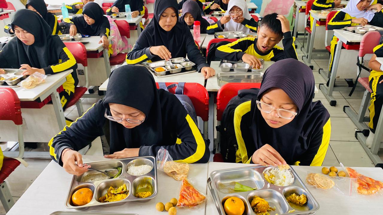 Kegiatan ini merupakan bagian dari program makan siang bergizi yang bertujuan meningkatkan kualitas gizi anak-anak usia sekolah sebagai generasi penerus bangsa.