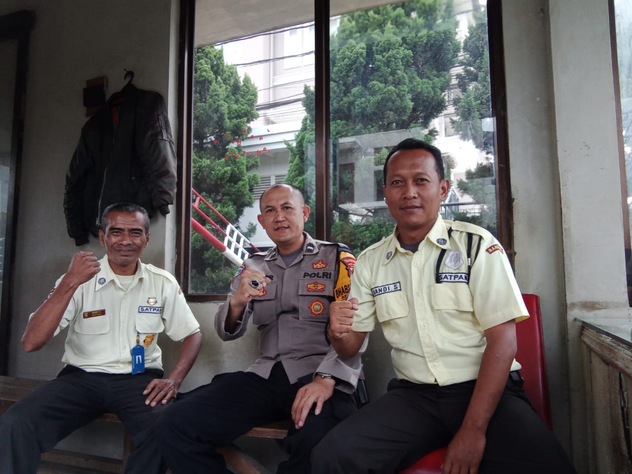 Dalam kesempatan tersebut, Aipda Dodi Daryatna menyambangi Pos Satpam dan berdialog dengan petugas piket, Bapak Hendi dan Bapak Beni.
