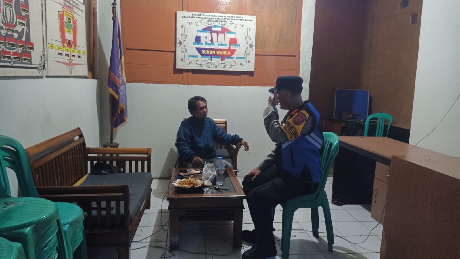 Dalam rangka menjaga situasi keamanan dan ketertiban masyarakat, Bhabinkamtibmas Kelurahan Mekarwangi Aipda Dodi Daryatna melaksanakan patroli malam hari bersama anggota Satlinmas RW 03 di Pos Satkamling Jalan Raden Rangga Kencana RT 02 RW 03, Warna Cinta, Kelurahan Mekarwangi, Kecamatan Bojongloa Kidul, Kota Bandung.