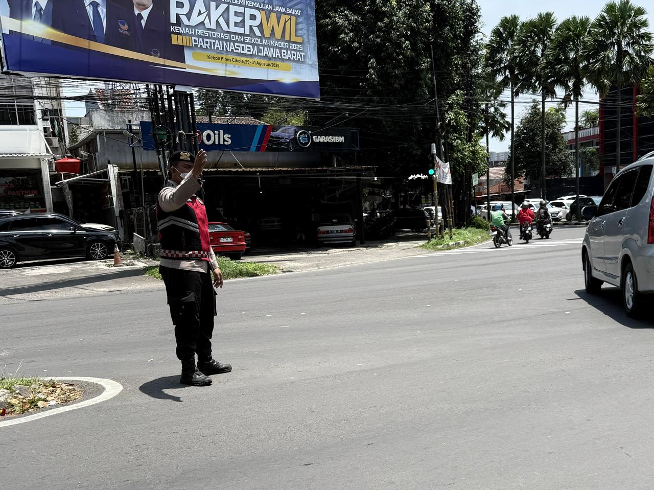 Polrestabes Bandung, Polda Jabar – Polsek Lengkong – Kanit Samapta Polsek Lengkong Ipda Korintus Sihombing,S.H. Pimpin pelayanan masyarakat siang Personil Unit Samapta Polsek Lengkong Polrestabes Bandung melaksanakan pelayanan masyarakat dan pengaturan arus lalu lintas siang di Jalan Buahbatu dan jalan Pelajar Pejuang 45 Kota Bandung, Senin (06/10/2025).