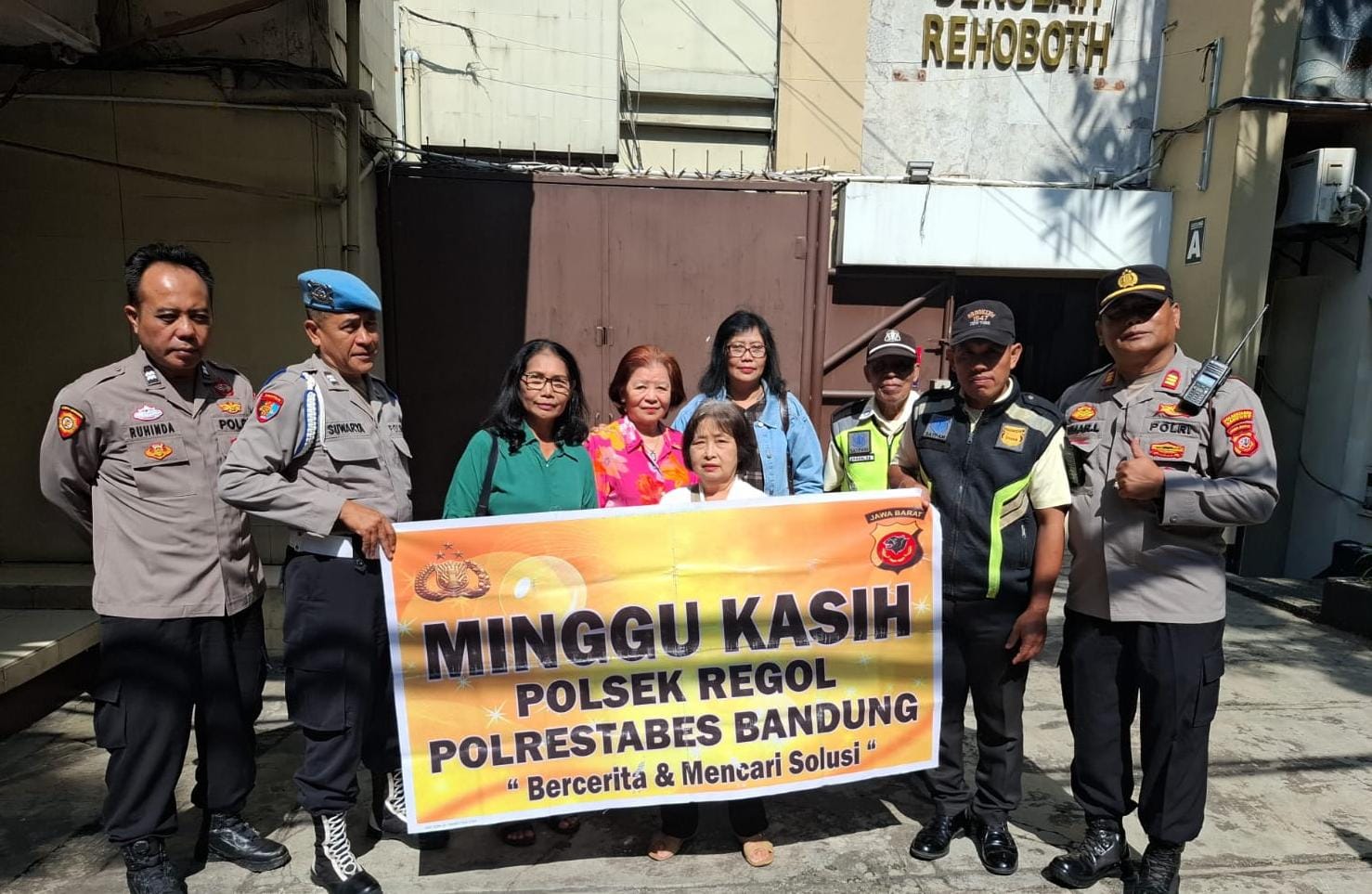 Polrestabes Bandung, Polda Jabar – Polsek Regol –  Dalam rangka Menjaga HarKamtibmas, Kanit Binmas Polsek Regol AKP Umar Lesmana SH bersama Piket Samapta, Bhabinkamtibmas, Intel dan Propam Polsek Regol  melaksanakan Patroli Dialogis, Sambang dan  Minggu Kasih Bersama Jemaat Gereja  yang melaksanakan kegiatan Ibadah kebaktian Rutin di wilayah hukum Polsek Regol Polrestabes Bandung. (Minggu, 12/10/2025).