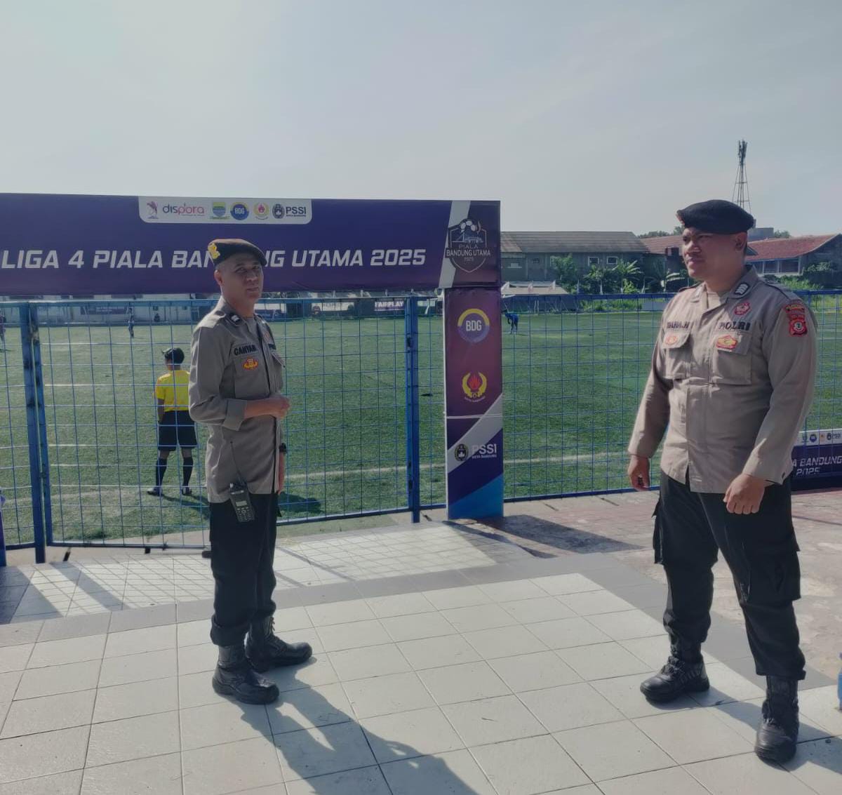 Polrestabes Bandung, Polda Jabar – Polsek Lengkong – Personel Polsek Lengkong melaksanakan Pengamanan kegiatan Sepak Bola Kompetisi Liga 4 Piala Bandung Utama Tahun 2025 bertempat di Lapangan Sepakbola Lodaya jalan Lodaya Kecamatan Lengkong Kota Bandung, Kamis (09/10/2025).