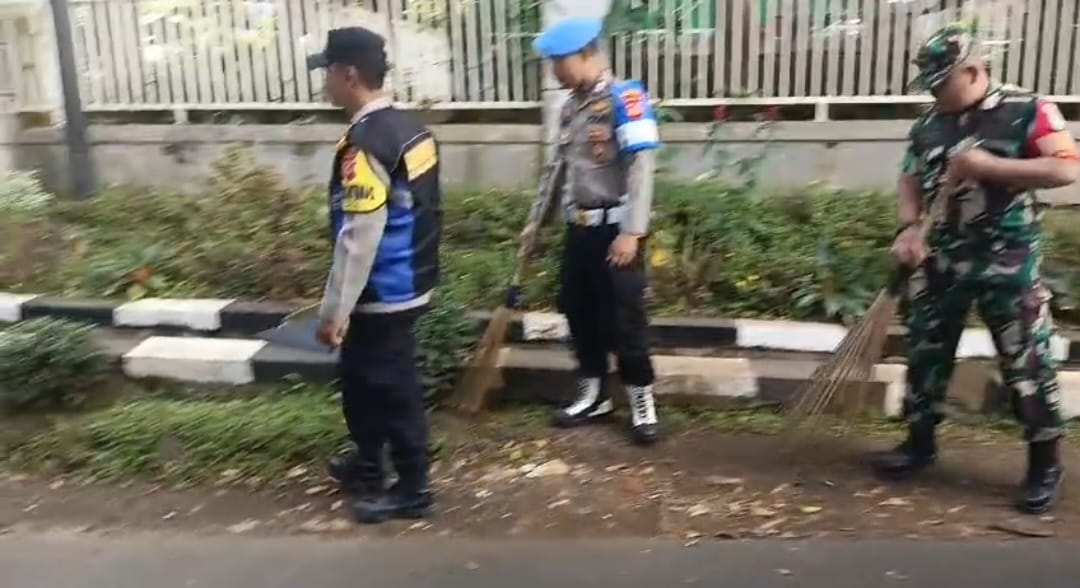Jalin Kerjasama Polsek Sukasari Lakukan Giat Kerja Bakti Bersama Forkopimcam Sukasari