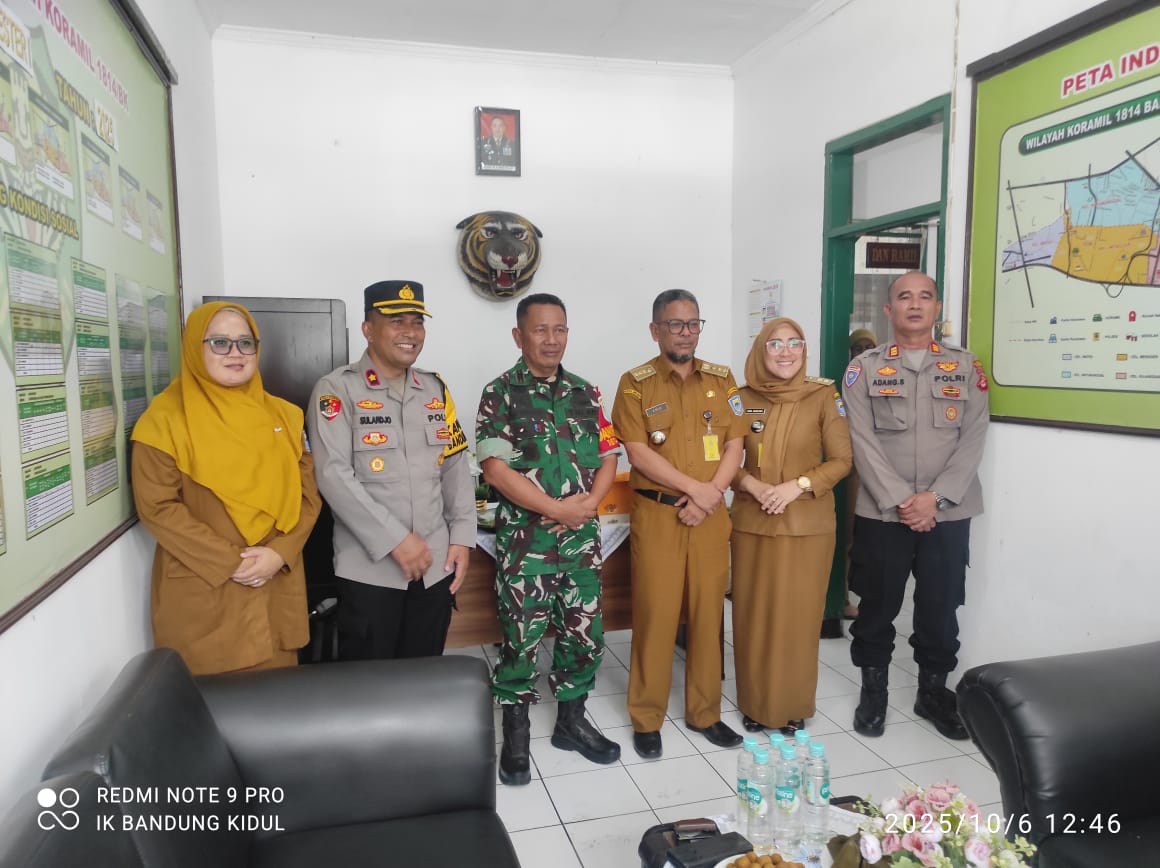 melakukan kunjungan ke kantor Koramil 1814/BK di Jl.Batununggal Indah Raya RW 01 Kel. Mengger Kec. Bandung Kidul Kota Bandung.Senin (06/10/2025).Kegiatan ini merupakan wujud sinergi dan soliditas antara unsur Forum Komunikasi Pimpinan Kecamatan (Forkopimcam).