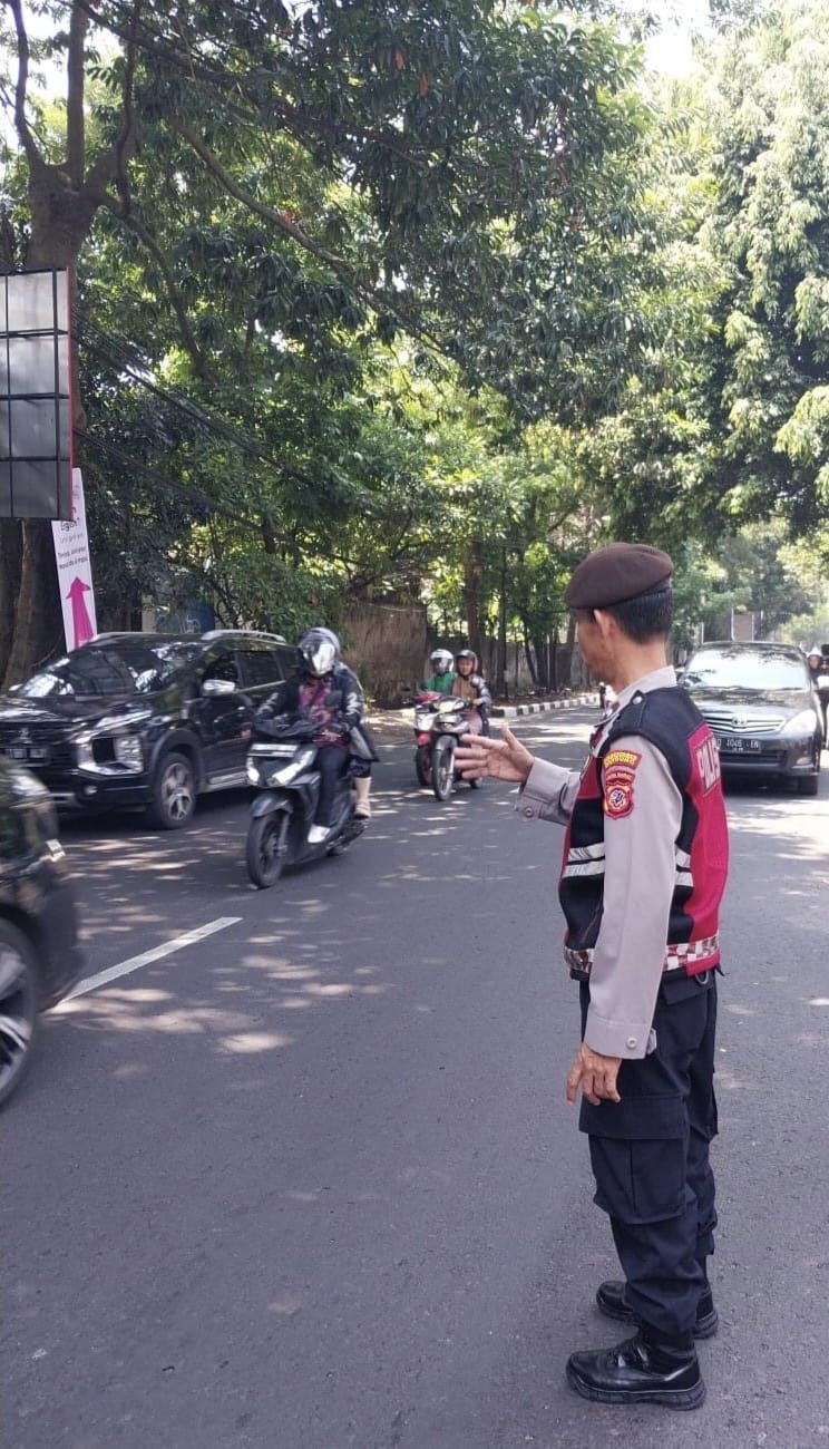 Polrestabes Bandung, Polda Jabar – Polsek Sukasari – Guna mengantisipasi terjadinya kemacetan di siang hari QR Polsek Sukasari Lakukan Giat Protap Yanmas siang Pengaturan Arus Lalulintas Jl.Sukajadi Atas Kelurahan Gegerkalong Kecamatan Sukasari Kota Bandung.(5/10/2025)