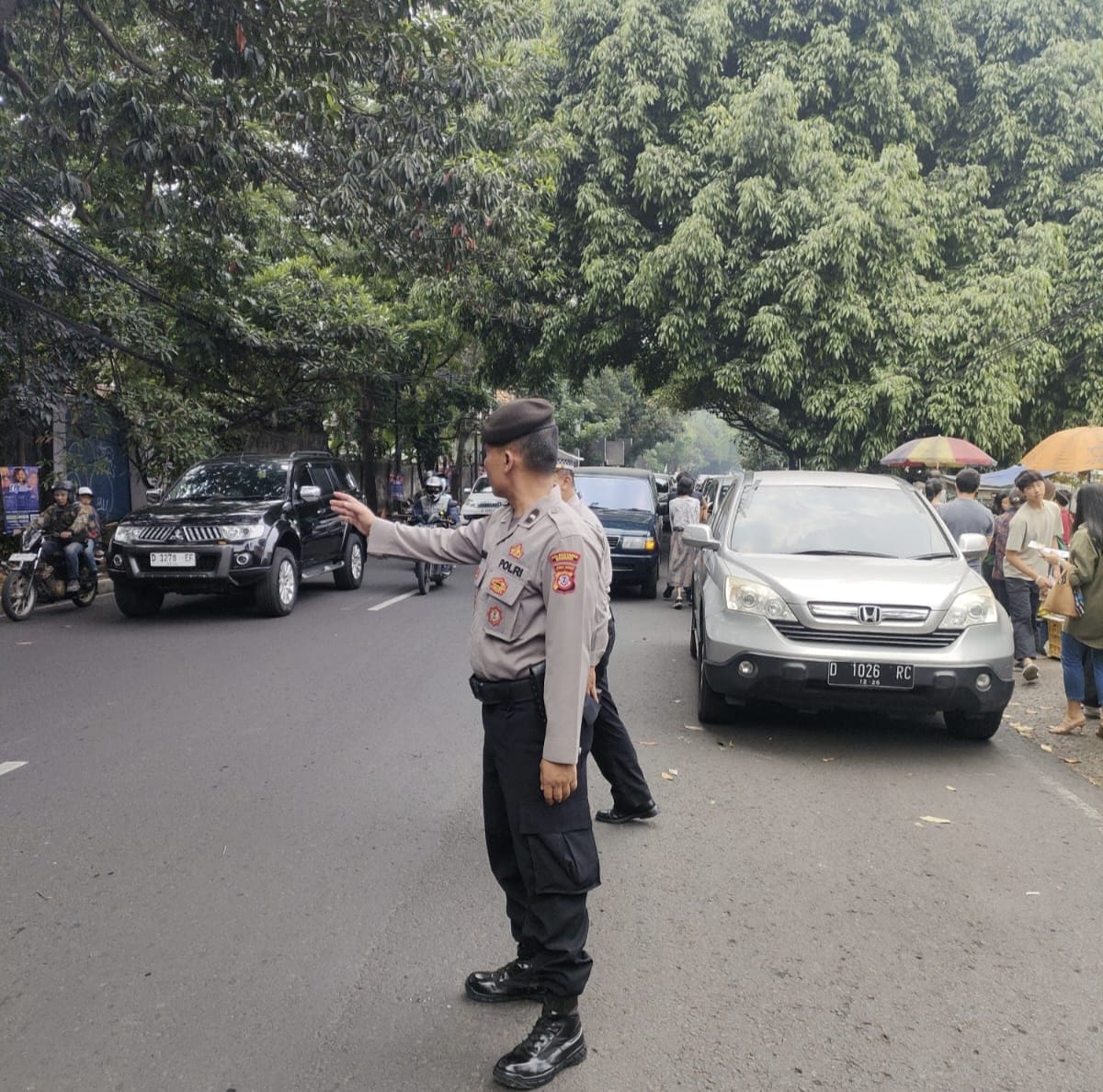 Polrestabes Bandung, Polda Jabar – Polsek Sukasari –Pelayanan Masyarakat siang hari QR Polsek Sukasari Lakukan Giat Protap Yanmas siang Pengaturan Arus Lalulintas di Jl.Sukajadi Atas Kelurahan Gegerkalong Kecamatan Sukasari Kota Bandung. (19/10/2025)