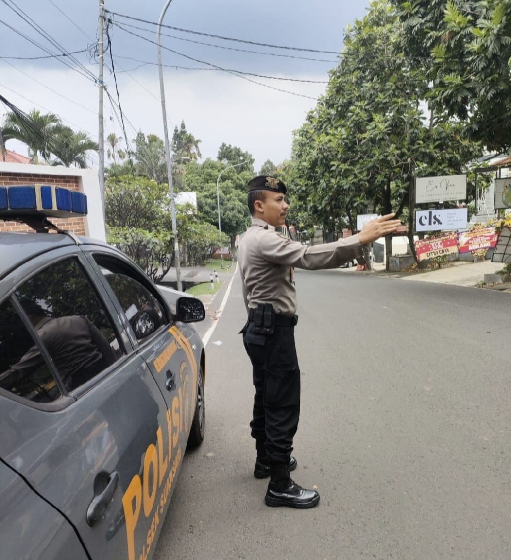 Pelayanan Masyarakat siang hari QR Polsek Sukasari Lakukan Giat Protap Yanmas siang Pengaturan Arus Lalulintas di Jl.Perintis Kelurahan Sarijadi Kecamatan Sukasari Kota Bandung. (13/10/2025)