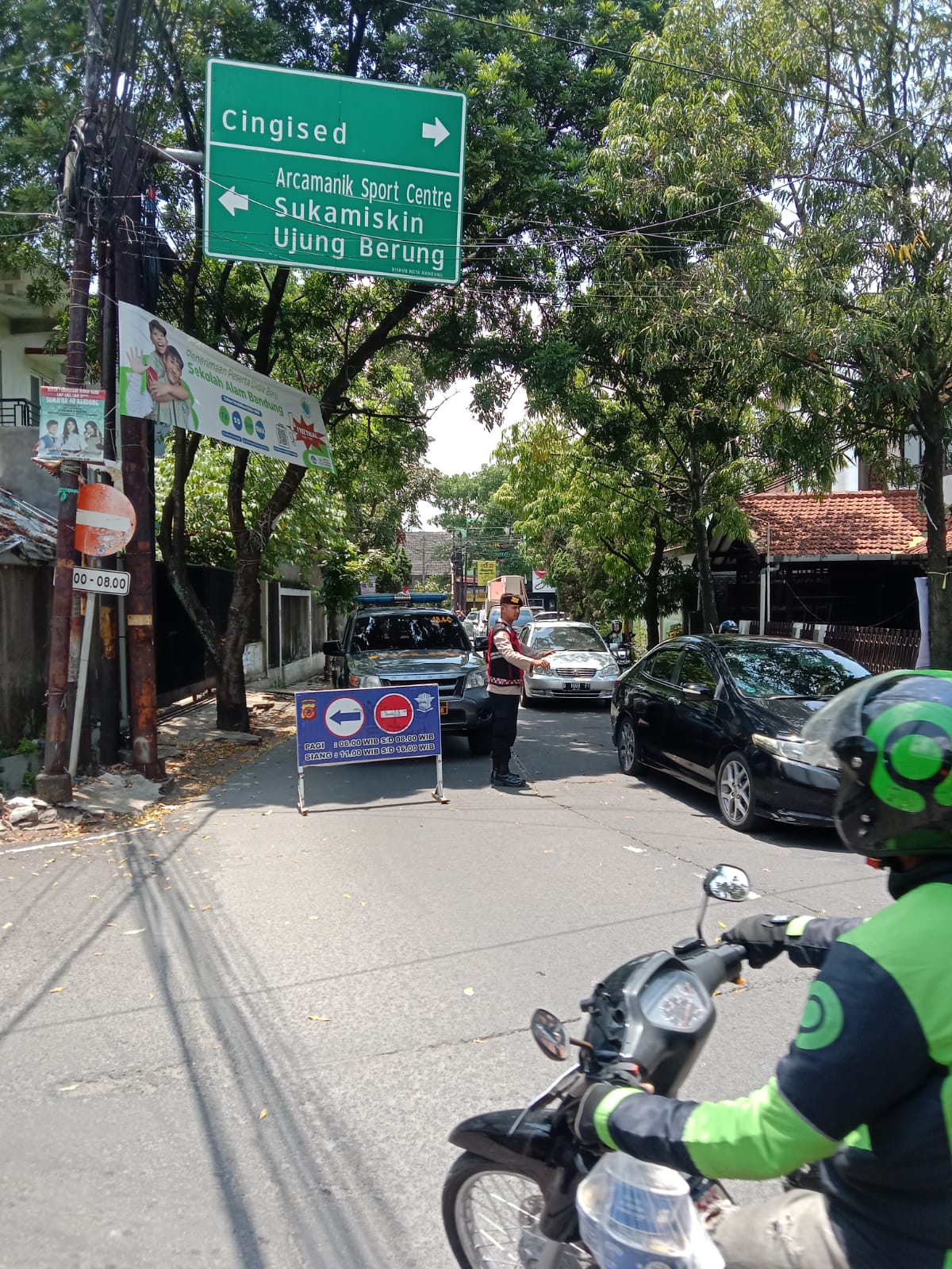 Personel samapta Polsek Arcamanik antisipsi kemacetan pada siang hari