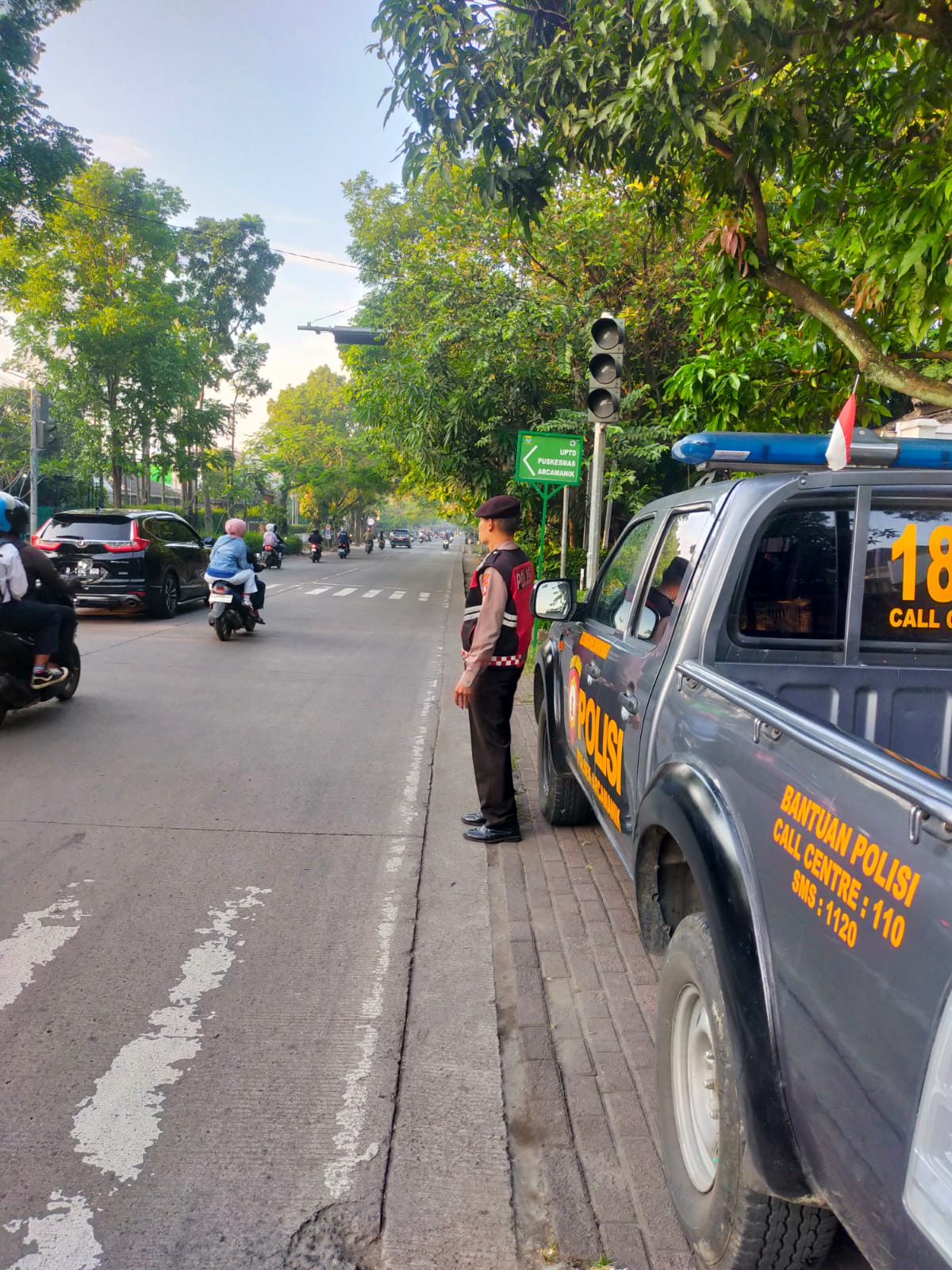 Polrestabes Bandung – Polda Jabar Polsek Arcamanik – Antisipasi kemacetan pagi personil Samapta Polsek Arcamanik melaksanakan pengamanan dan pengaturan di tempat tempat rawan kemacetan seperti Di Jl. Arcamanik Endah – Golf timur, Jl.Arcamanik Endah – Golf Barat.(Selasa, 14-10-2025)