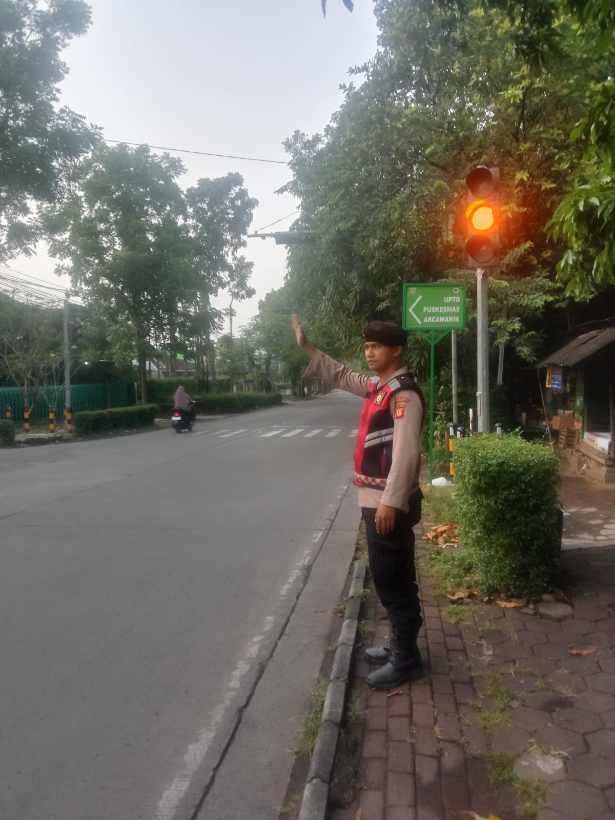 Polrestabes Bandung- Polda Jabar Polsek Arcamanik –Antisipasi kemacetan pagi personil Samapta Polsek Arcamanik melaksanakan pengamanan dan pengaturan di tempat tempat rawan kemacetan seperti Di Jl. Arcamanik Endah – Golf timur, Jl.Arcamanik Endah – Golf Barat.(Minggu, 19-10-2025)