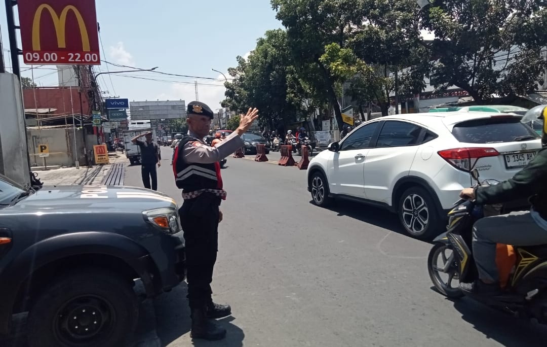 Antisipasi kemacetan Siang Hari personil Samapta Polsek Ujungberung melaksanakan pengamanan dan pengaturan di tempat tempat rawan kemacetan seperti Di Jl. A.H. Nasution-Jln Kaum depan Pasar Ujungberung.(06-10-2025)