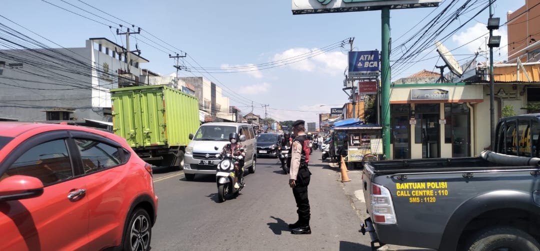 Polrestabes Bandung- Polda Jabar Polsek Ujungberung – Antisipasi kemacetan Siang Hari personil Samapta Polsek Ujungberung melaksanakan pengamanan dan pengaturan di tempat tempat rawan kemacetan seperti Di Jl. A.H. Nasution-Jln Kaum depan Pasar Ujungberung. (07-10-2025)