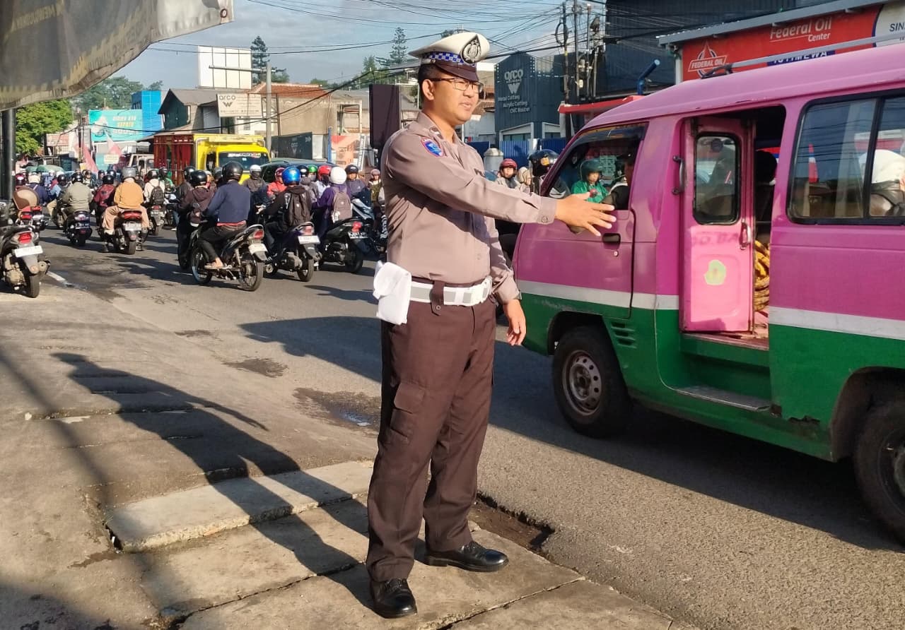 Personel Unit Lantas Polsek Antapani Intensif Lakukan Pengaturan Lalu Lintas di Titik Rawan Macet