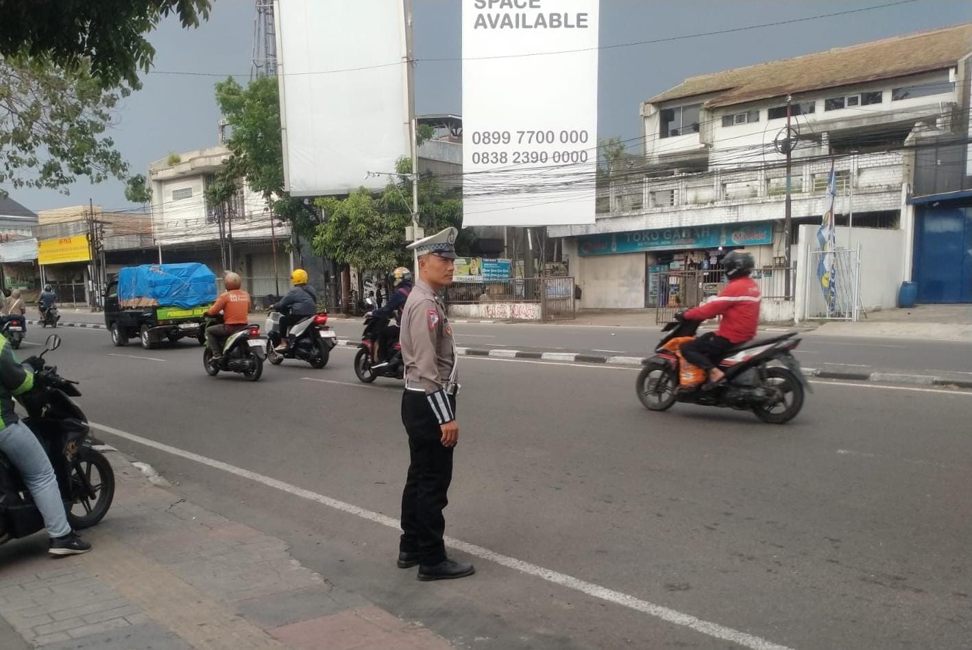 Personel Unit Lantas Polsek Babakan Ciparay Lakukan Pengaturan Arus Lalin Sore Hari Guna Antisipasi Kemacetan