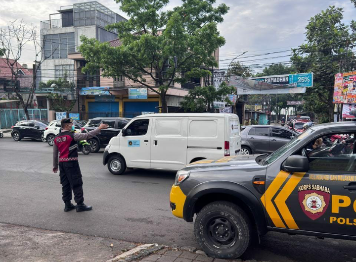 Personel Unit Samapta Polsek Antapani Lakukan Pengaturan Arus Lalulintas Upaya Antisipasi Kemacetan Pagi Hari