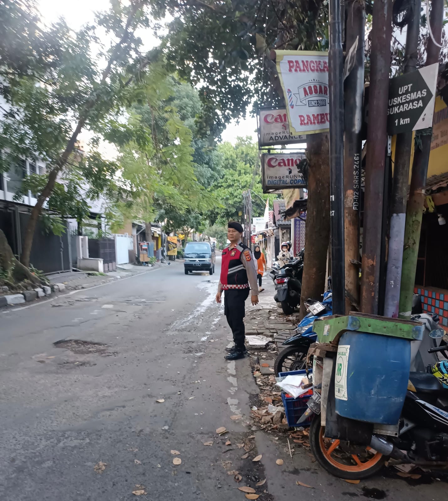 Guna mengantisipasi terjadinya kemacetan di pagi hari QR Polsek Sukasari Lakukan Giat Protap Yanmas Pagi Pengaturan Arus Lalulintas di Jl.Sariasih Kelurahan Sarijadi Kecamatan Sukasari Kota Bandung.(1/10/2025)