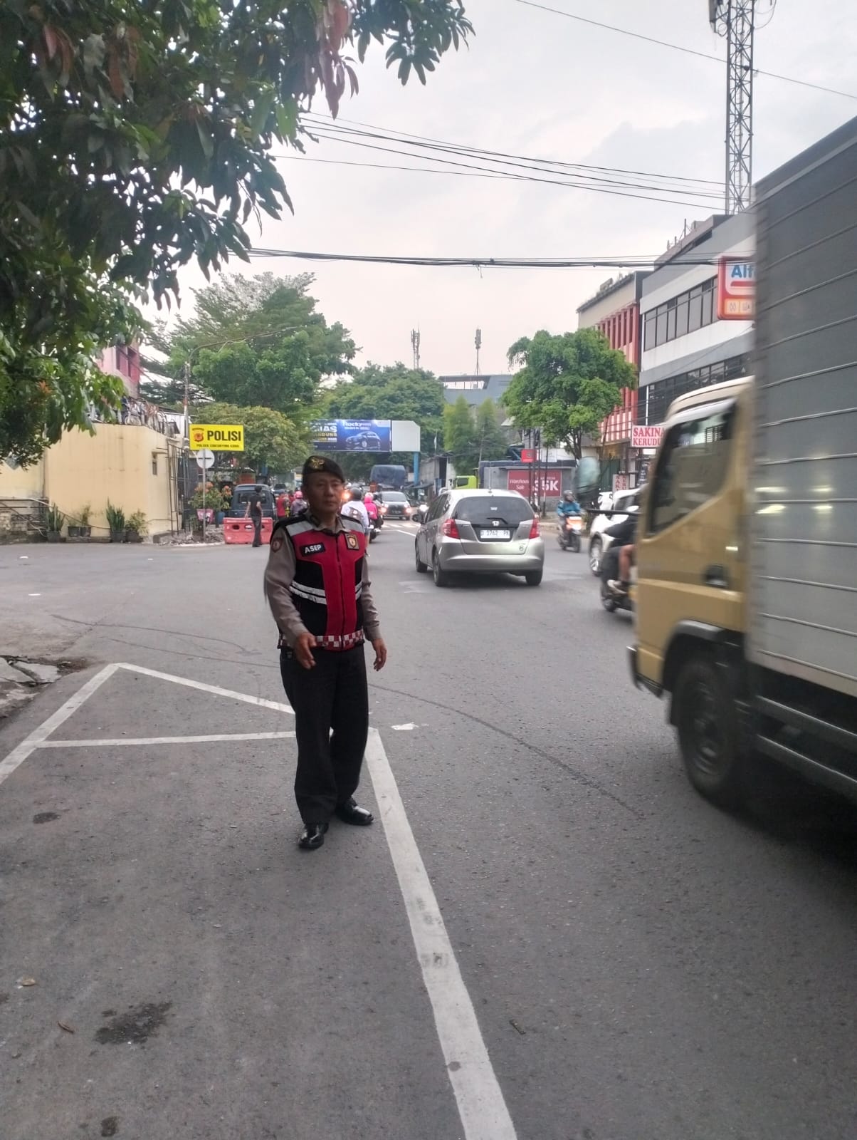 Polrestabes Bandung, Polda Jabar Polsek Cibeunying Kidul – Antisipasi kemacetan pada sore hari tanggal 12 Oktober 2025,personil Samapta Polsek Cibeunying Kidul melaksanakan pengamanan jalur di titik rawan kemacetan Wilayah Hukum Polsek Cibeunying Kidul Polrestabes Bandung