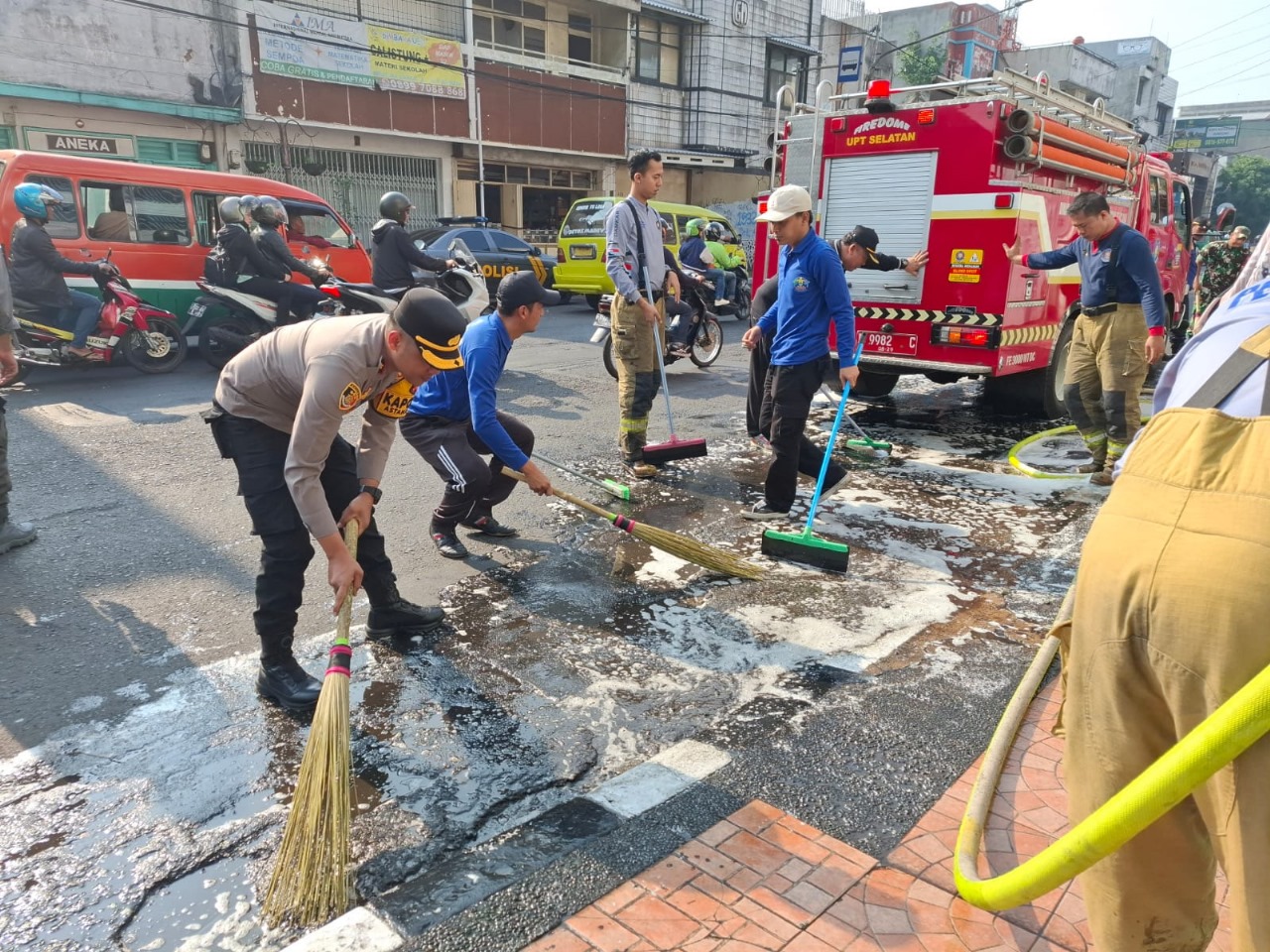 Polrestabes Bandung, Polda Jabar – Polsek Astanaanyar –Dalam rangka memperingati Hari Jadi Kota Bandung (HJKB) ke-215, jajaran Polsek Astanaanyar yang dipimpin langsung oleh Kapolsek Astanaanyar Kompol Fetrizal.S, S.I.K., M.H., turut ambil bagian dalam kegiatan gotong royong bersih-bersih Kota Bandung Serentak tingkat Kecamatan Astanaanyar. (Rabu,15/10/2025)