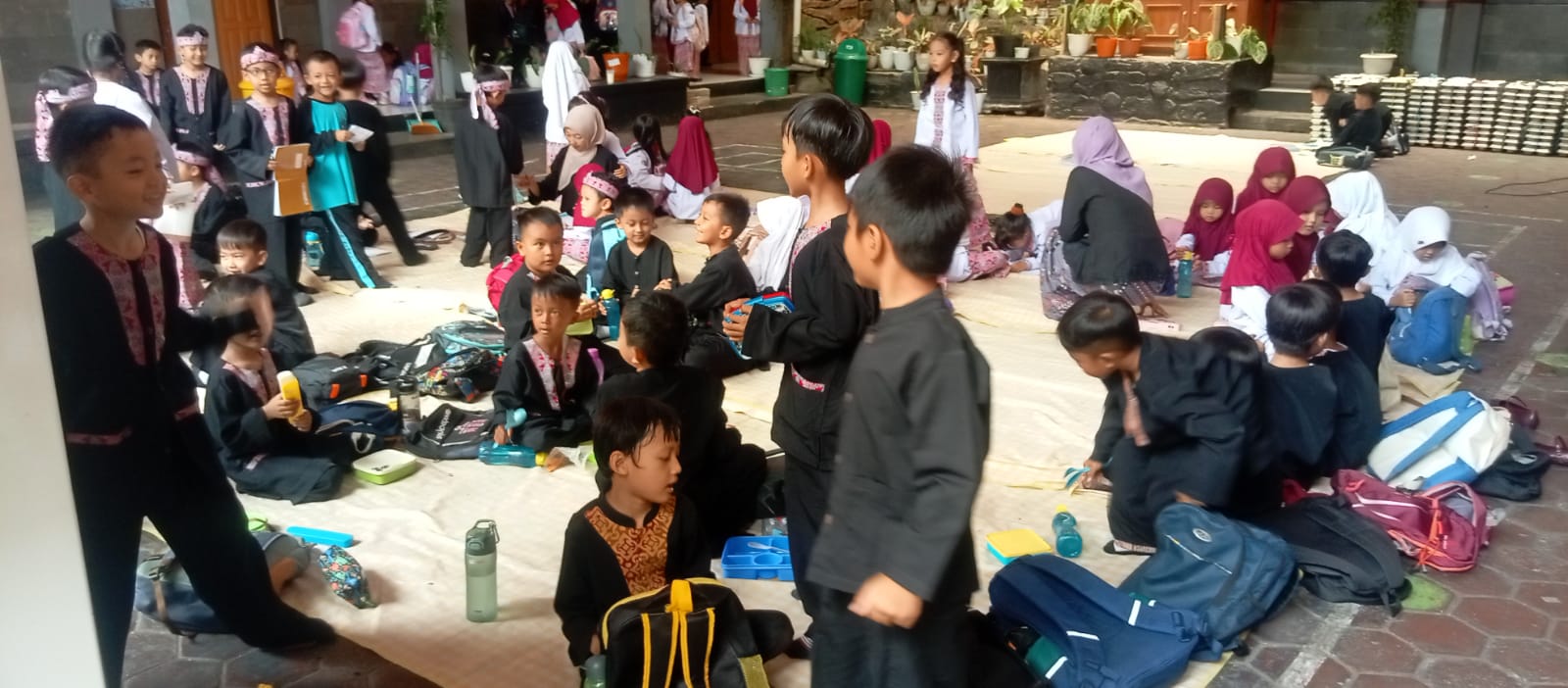 Kegiatan tersebut ditujukan bagi para siswa mulai dari tingkat TK, SD, SMP, hingga SMK. Adapun menu makanan bergizi gratis yang dibagikan yaitu nasi liwet, ayam goreng serundeng, tumis sayur, tahu kecap, serta buah pisang.