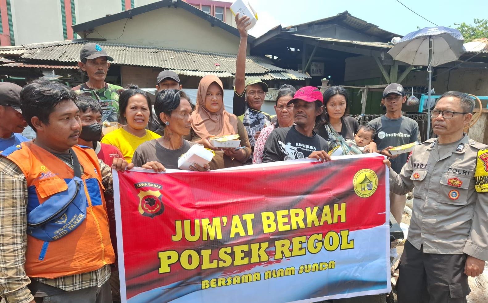 Polrestabes Bandung, Polda Jabar – Polsek Regol – Sebagai bentuk kepedulian Sosial terhadap warga masyarakat masyarakat, Rumah Makan Alam Sunda bekerja sama dengan Polsek Regol menggelar kegiatan rutin bertajuk Jumat Berkah. Sebanyak 15 bungkus nasi kotak dibagikan kepada Para Pemulung Sampah disekitar TPS Kembar di Jl.Moch.Toha Kel.Ciseureuh Kecamatan Regol Kota Bandung. (Jum’at, 10/10/2025).