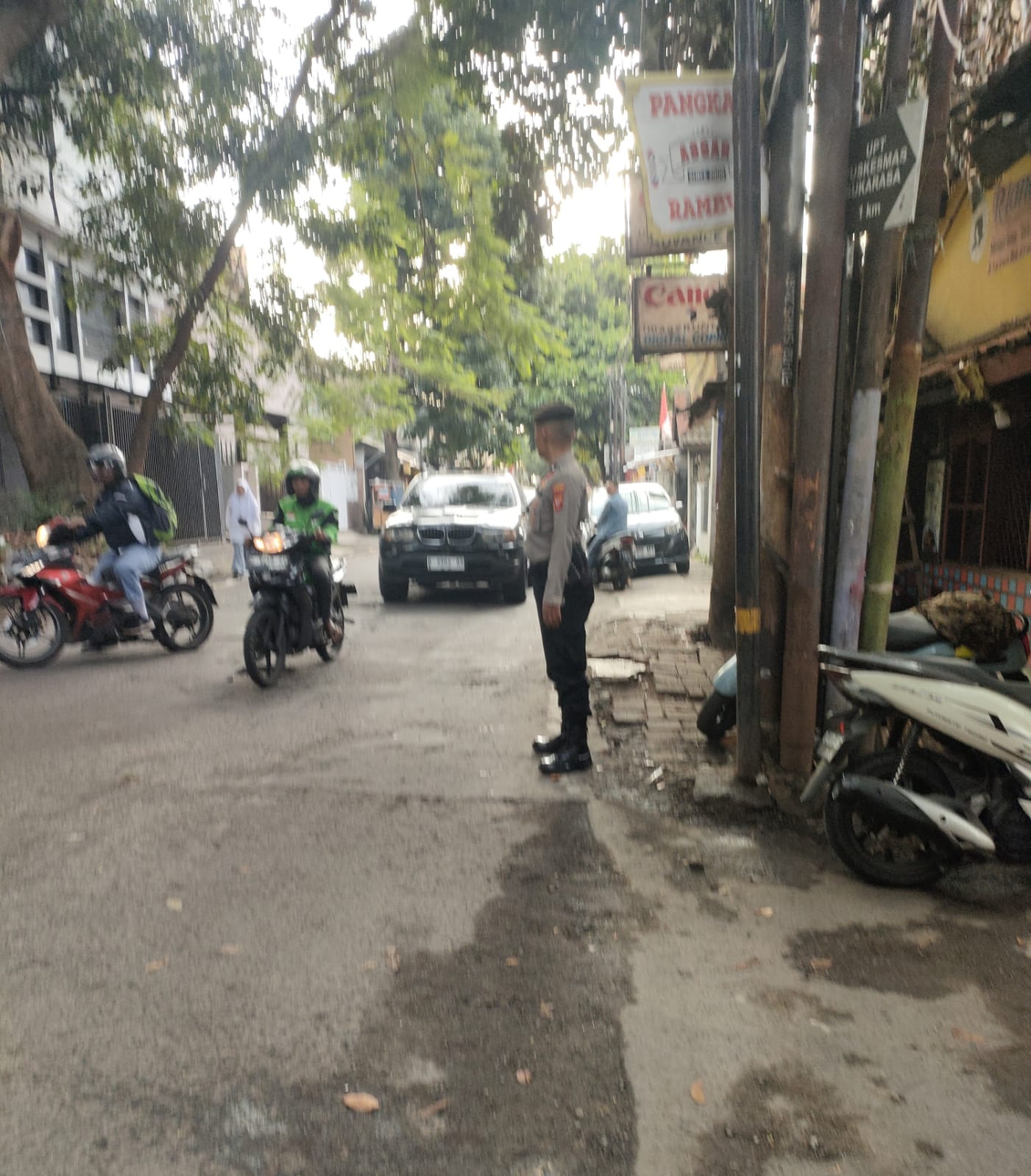 QR Polsek Sukasari Lakukan Giat Protap Yanmas Pagi Pengaturan Arus Lalulintas