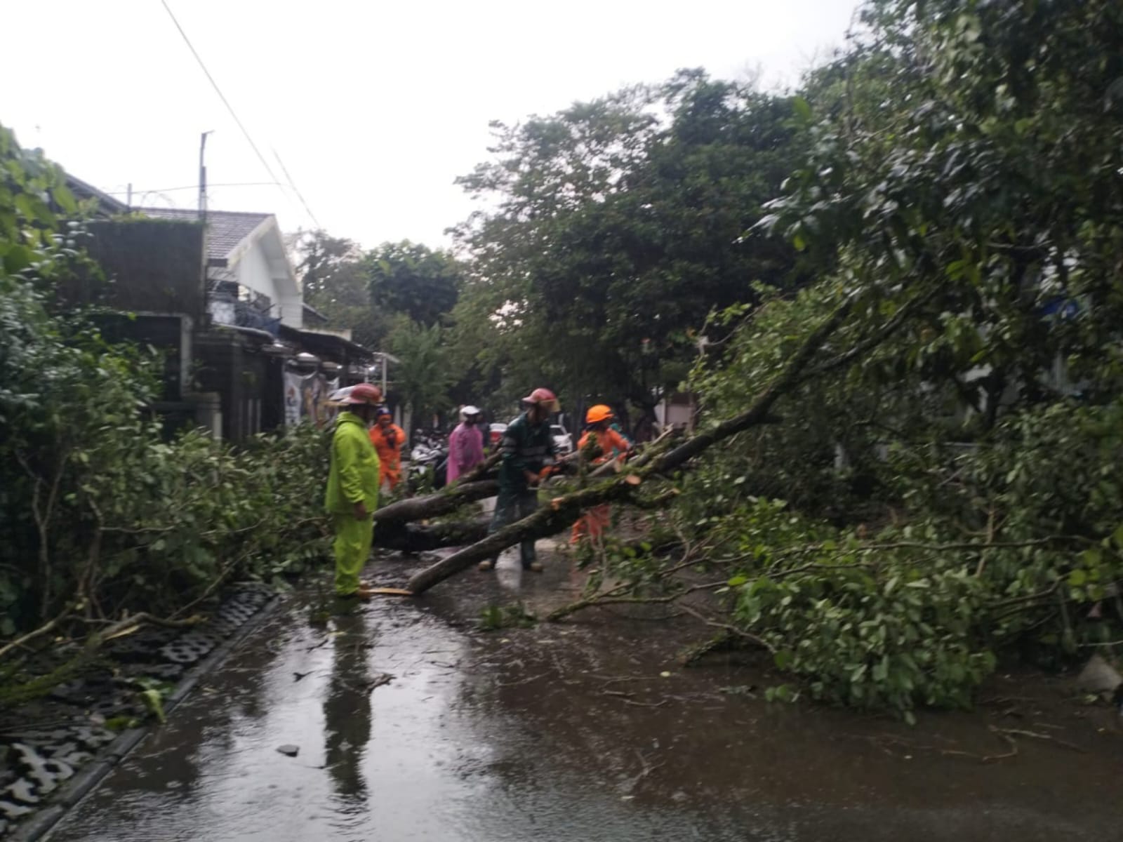Kerjadian tersebut diduga akibat hujan lebat disertai angin kencang dan tidak memakan korban jiwa.
