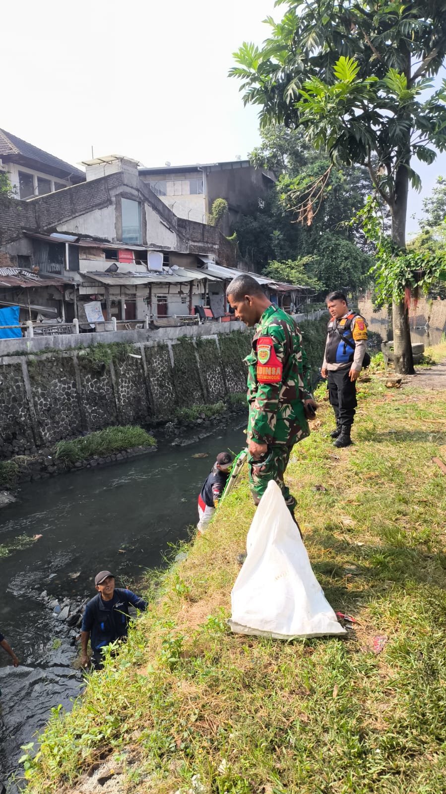 Polrestabes Bandung Polda Jabar Polsek Bandung Kidul –Untuk membersihkan sampah di sepanjang aliran Sungai Cidurian,Bripka Dadan bhabinksmtibmas polsek bandung kidul dan babinsa koramil 1814 BK Serta warga lakukan bergotong royong.Minggu (19/10/2025)