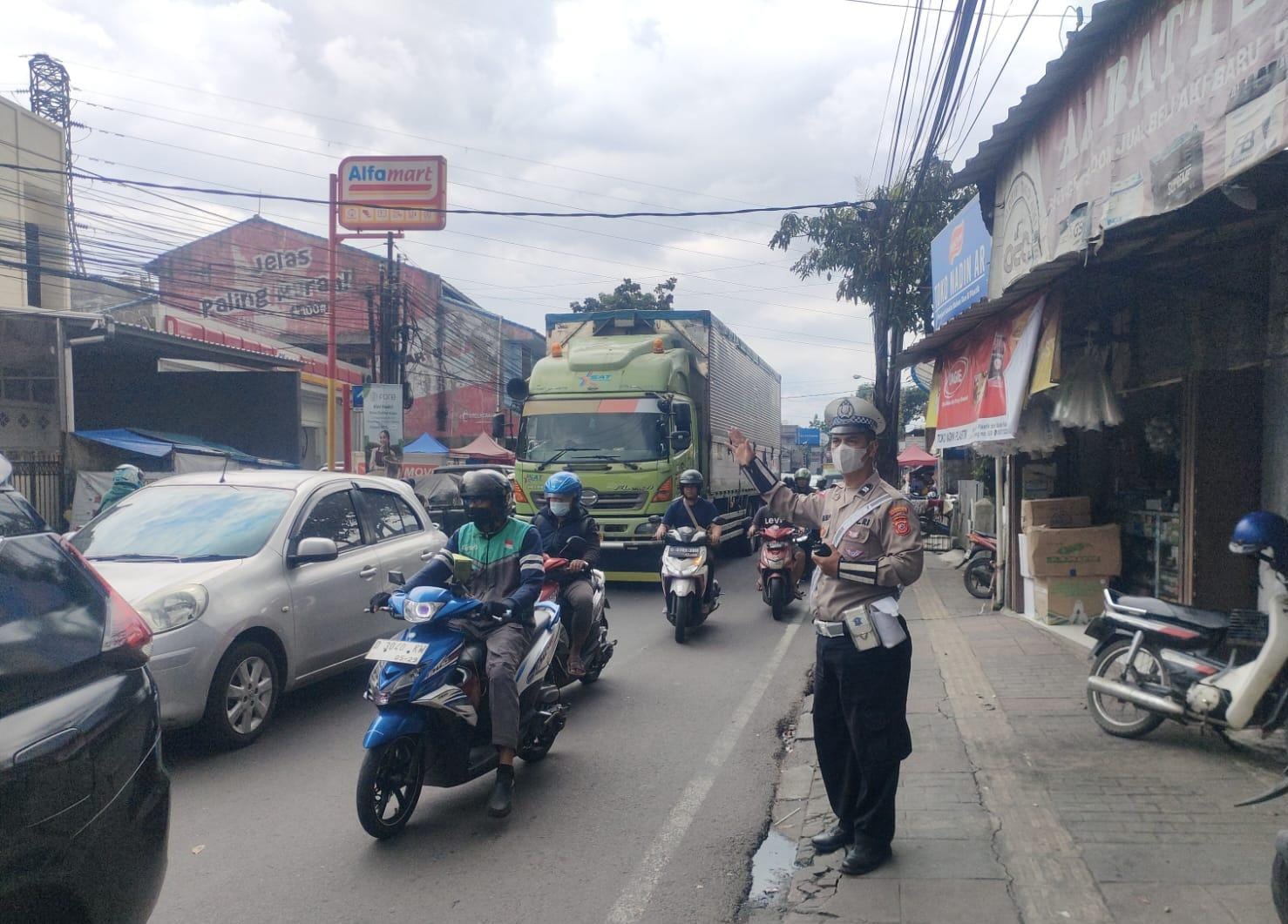 Polrestabes Bandung, Polda Jabar Polsek Babakan Ciparay – Antisipasi kemacetan siang hari, Personil lalulintas Polsek Babakan Ciparay melaksanakan pengamanan jalur di titik rawan kemacetan Wilayah Hukum Polsek Babakan Ciparay Polrestabes Bandung.(23/10/2025)