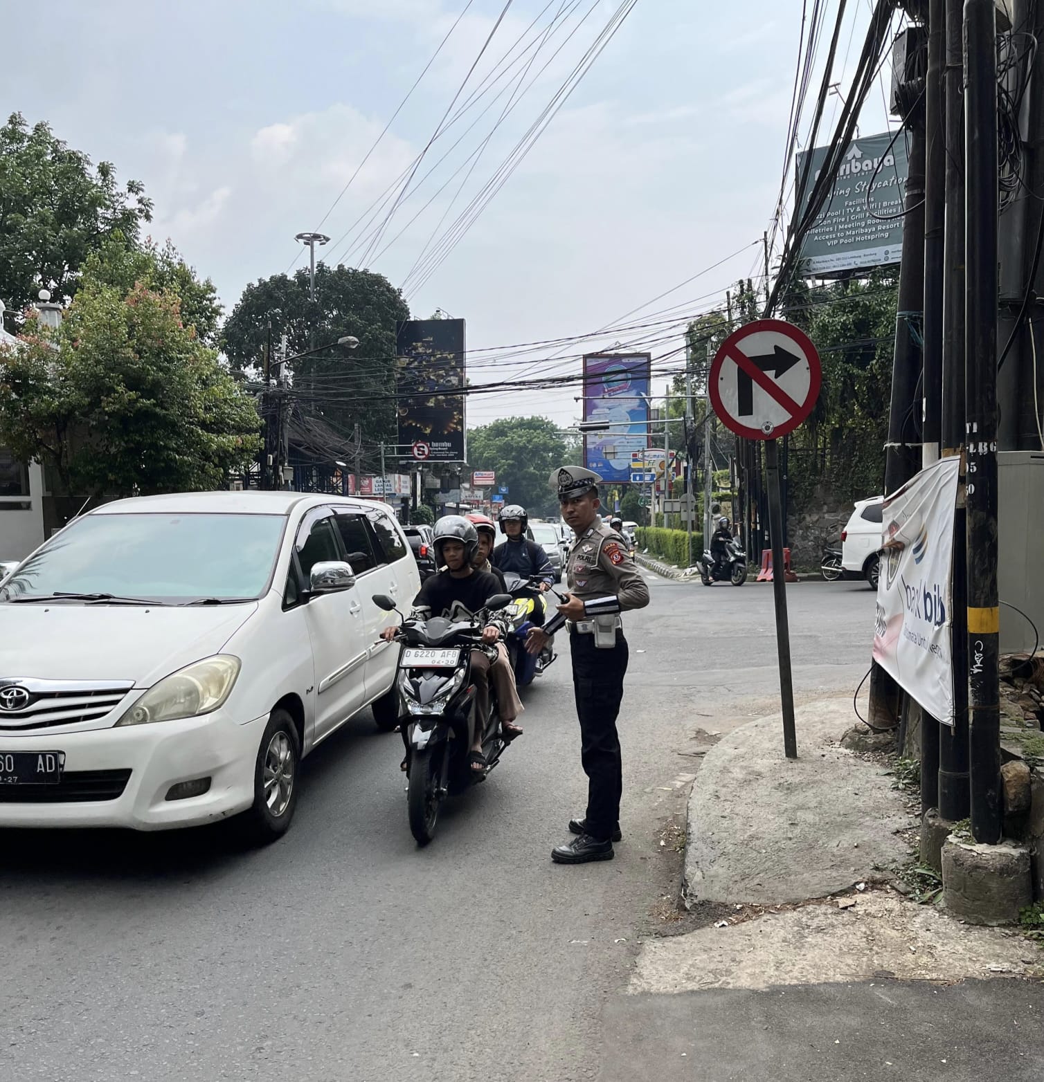 Upaya Ciptakan Arus Lalulintas Lancar Unit Lalulintas Polsek Sukasari Lakukan Giat Pengaturan Arus Lalulintas Siang Hari.