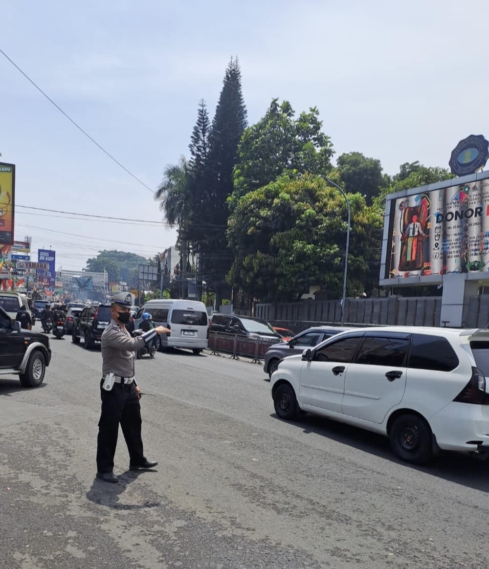 Polrestabes Bandung, Polda Jabar – Polsek Sukasari – Upaya ciptakan arus lalulintas lancar personil lalulintas Polsek Sukasari lakukan giat pengaturan arus lalulintas di titik rawan kemacetan Wilayah Hukum Polsek Sukasari Polrestabes Bandung. (16/10/2025)
